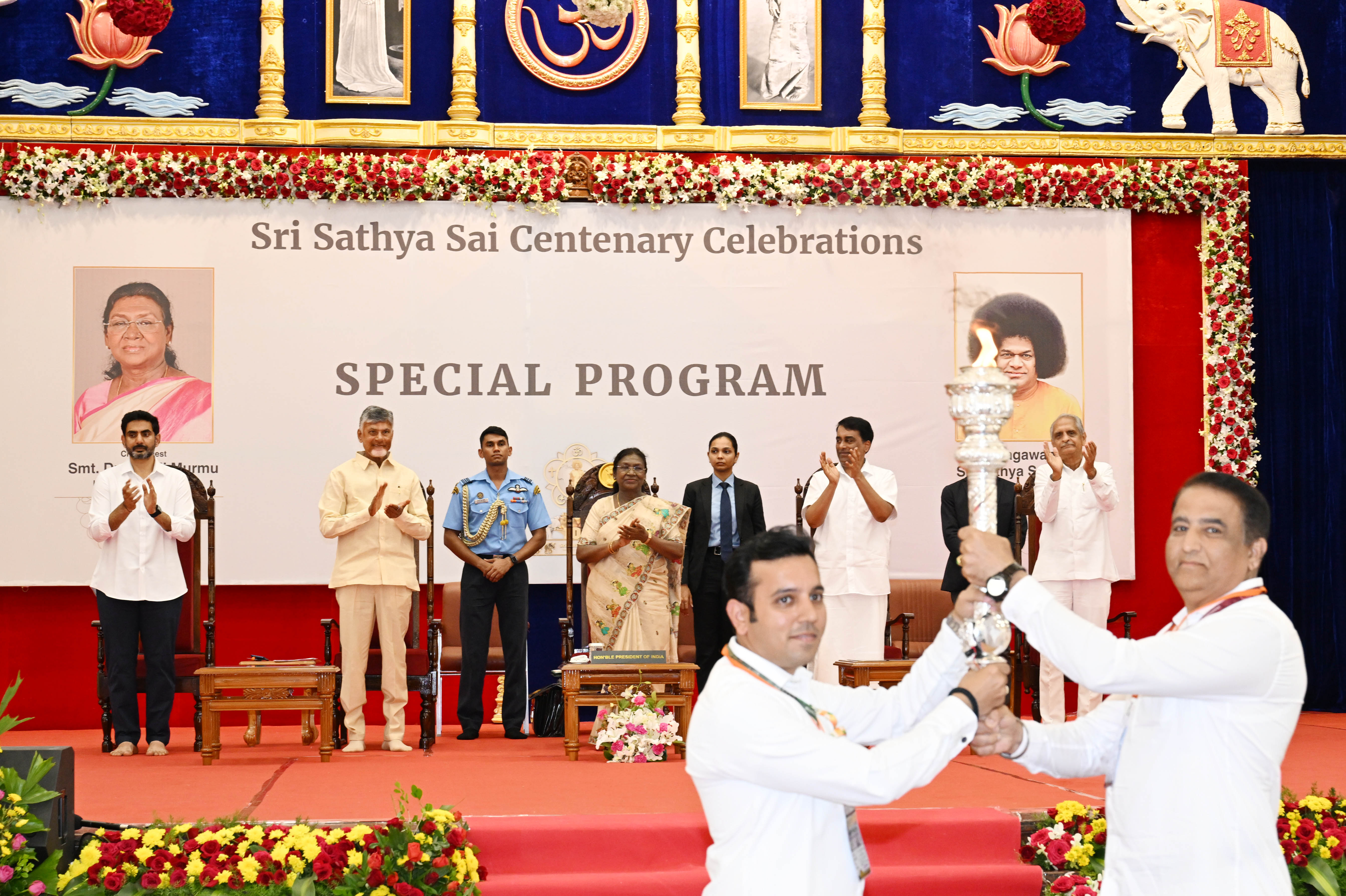 22 नवंबर, 2025 को पुट्टपर्थी, आंध्र प्रदेश में प्रशांति निलयम में श्री सत्य साईं बाबा के शताब्दी समारोह के विशेष सत्र के दौरान भारत की राष्ट्रपति, श्रीमती द्रौपदी मुर्मु।